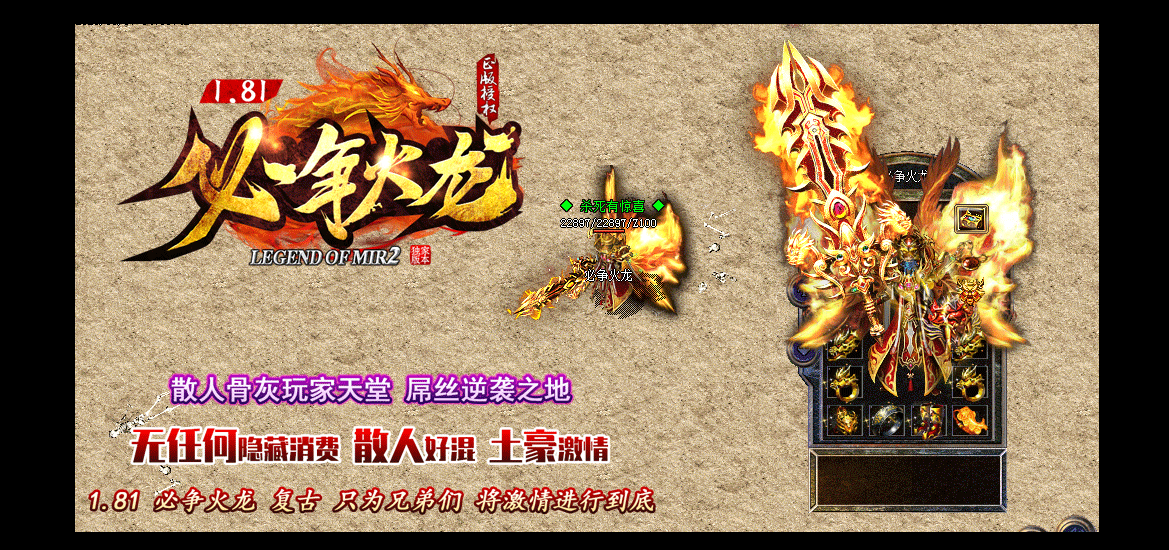 - 游戏介绍本服为复古火龙三职业类型,玩法多变乐趣远超市面所有版本!